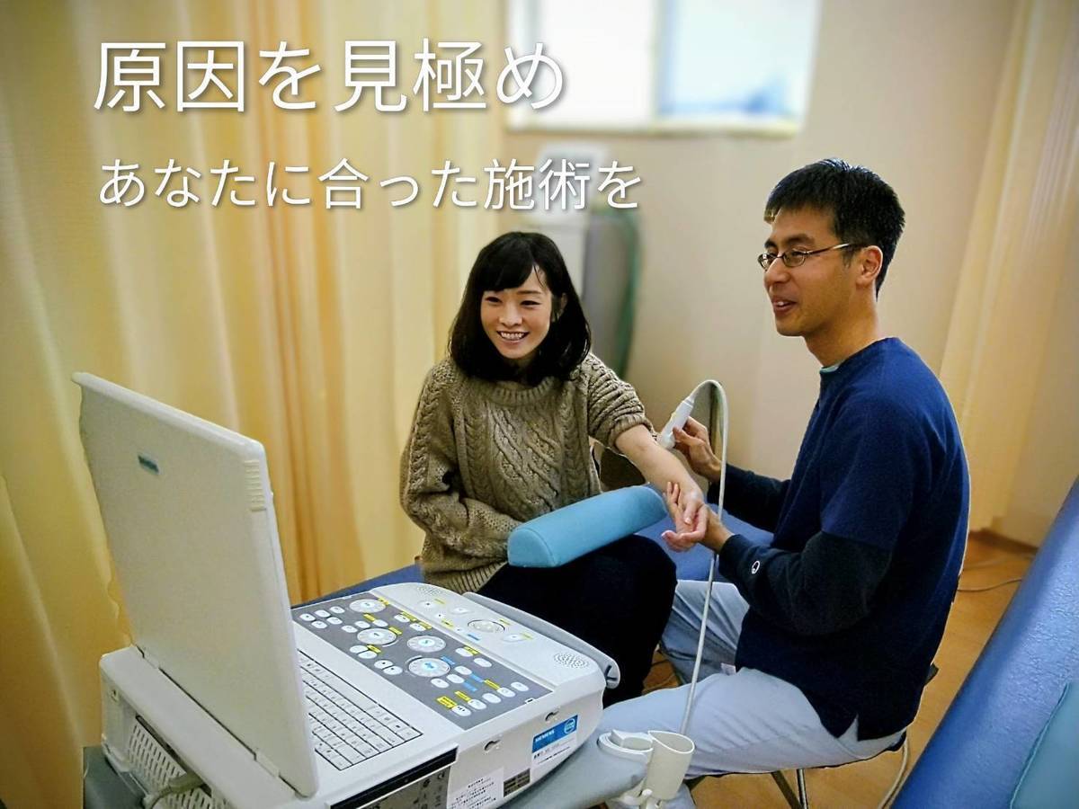 当院は、けがの状態をエコー(超音波画像診断装置)を使って詳しく検査をし、適切な施術で痛みを早くとることに専念、早い現場復帰をサポートします。