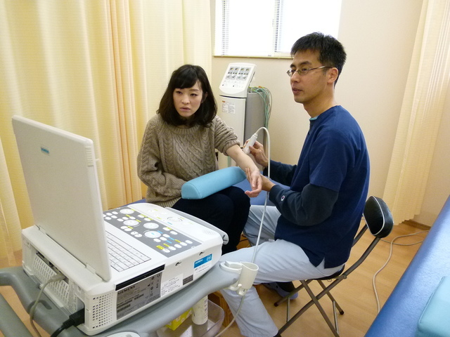 整形外科でないとダメだとお考えの方が多いと思いますが、こちらでは迅速に適切な処置ができ、エコーもありますので骨の状態や関節の状態を観ることが出来ます。